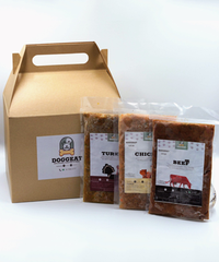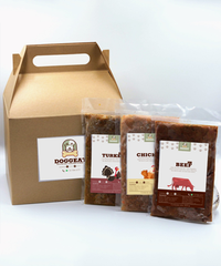 Comida fresca y natural para tu perro, cocinada a nivel de pasteurización, que incluye una amplia variedad de alimentos a base de carne de pollo, pavo y res de alta calidad. Doggeat contiene entre 60% y 80% de proteína animal, complementando con vegetales y frutas. NO contiene ningún tipo de granos o cereales, gluten, ingredientes procesados y sobre todo libre de conservadores.